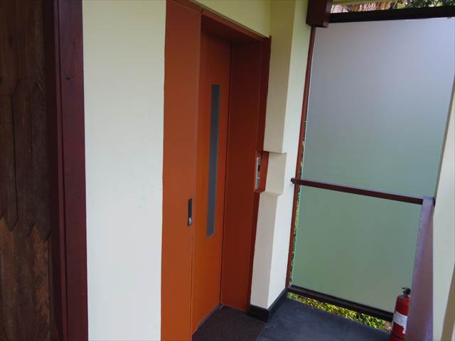 敷地内にエレベーターが設置されていました。近代的なデザインでちょっと浮いてますが、うれしい配慮です。